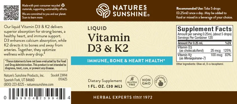 New Liquid Vitamin D3 & K2 is the hardest-working, longest-lasting vitamin duo for strong bones and a healthy heart.